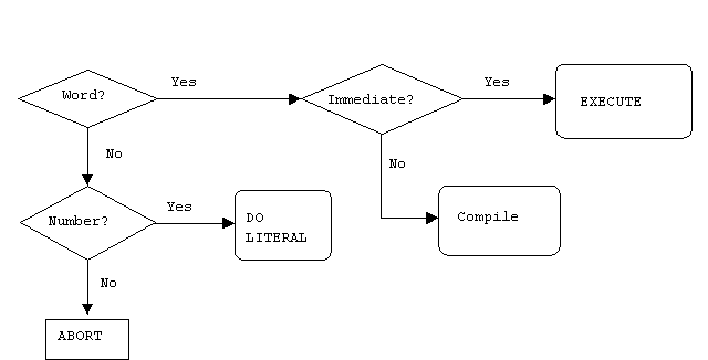 The diagram below is a flow chart representing the actions performed by the Forth outer interpreter during interpretation.